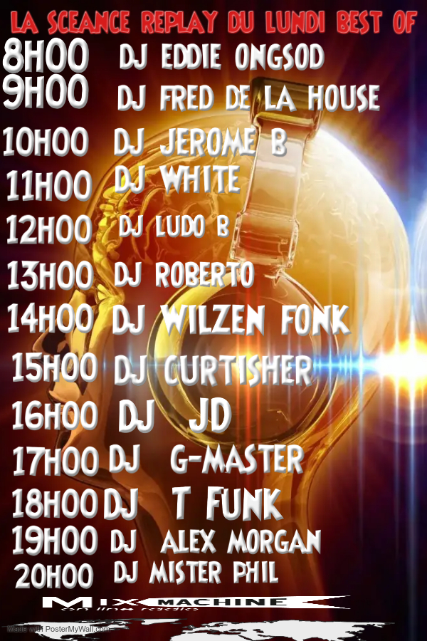 - dj eric b : bonsoir pour ma part rdv dés 19h00 sélction nu funk & nu disco
